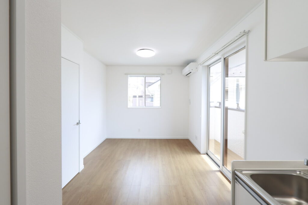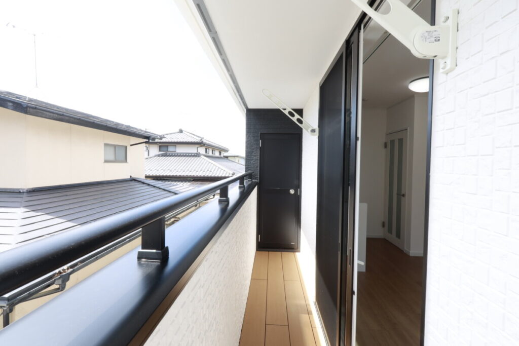 リビングと段差のないバルコニー床。ご入居者様に少しでも広く感じていただこうとオーナー様のこだわりポイントです。
