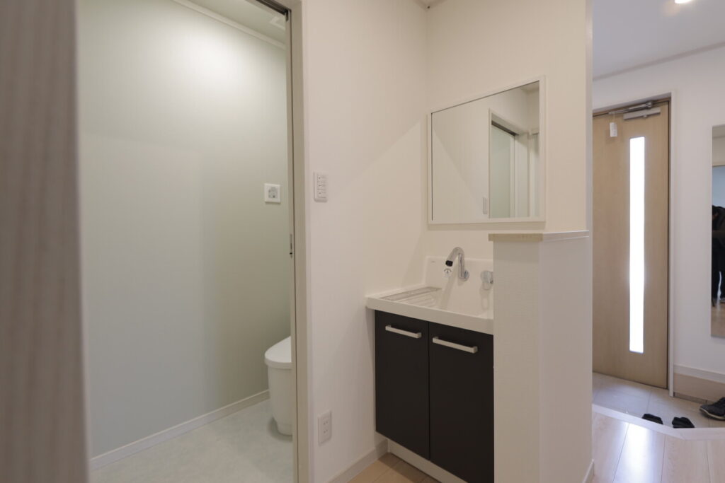 トイレの床と壁が淡いグリーンで爽やかな空間です。