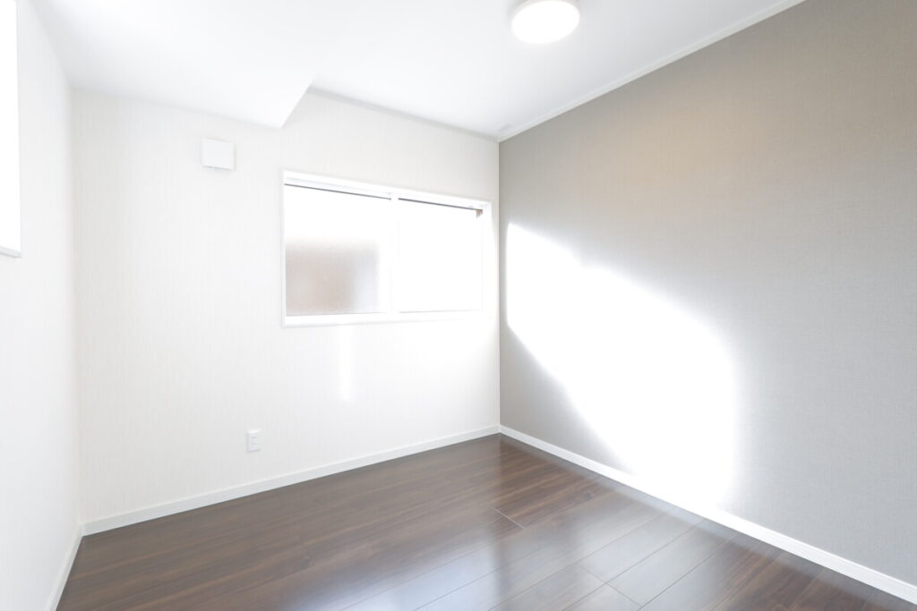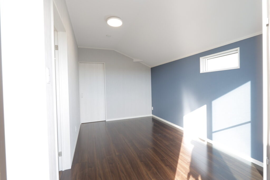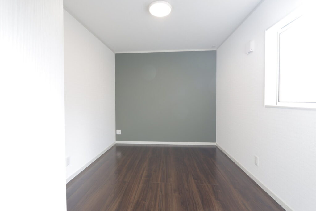 2階は雰囲気を変えるため床色を変更しました。奥にWICがあります。