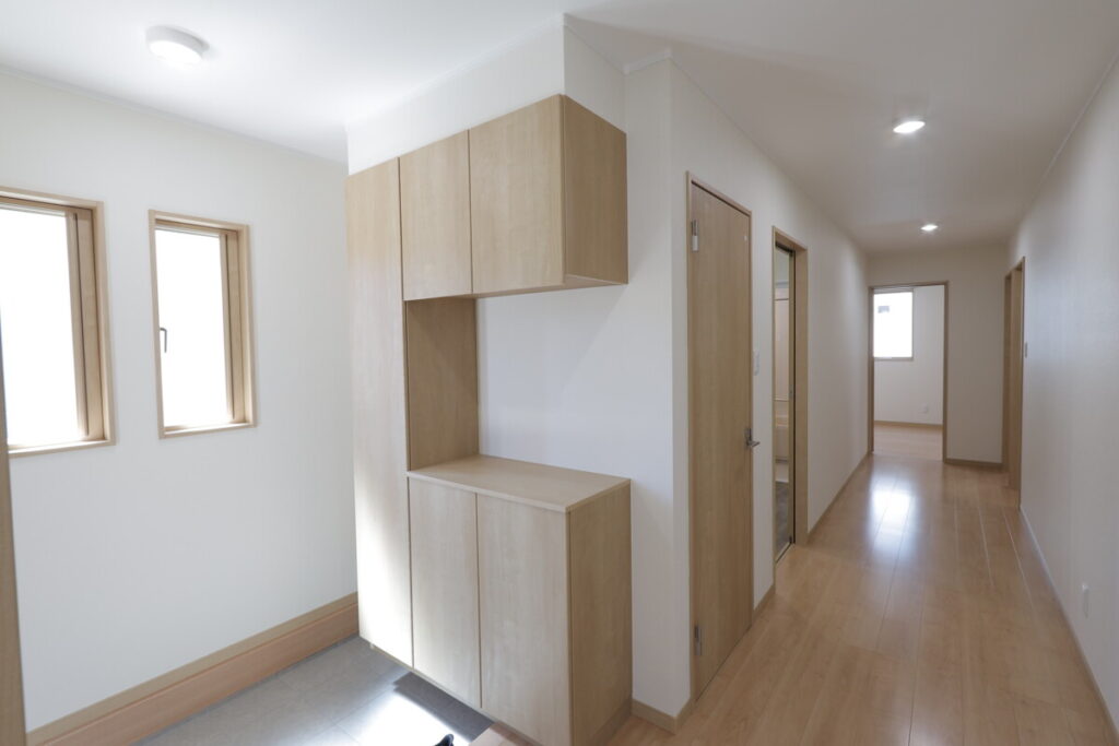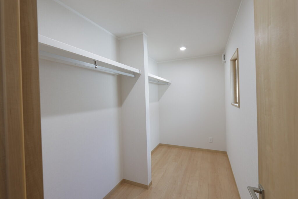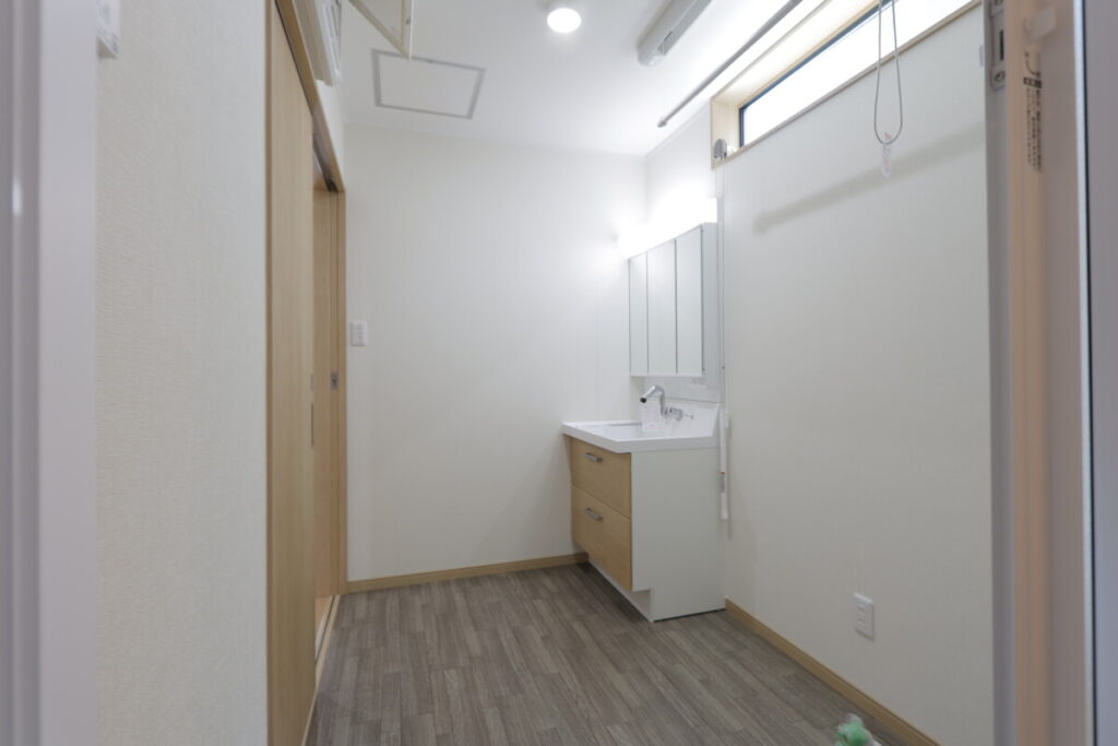 洗面脱衣室は室内干し空間にも利用するため広めのスペースとなっております。